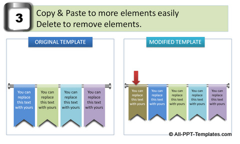 Any element can be deleted or added on to as per your presentation content. Just copy and paste elements like shown the example here. Just hit the Delete button to remove unwanted elements. |