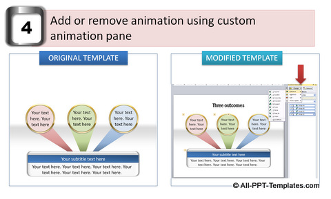 Many of the templates have built in basic animation. You can add your own animation, modify the existing animation or remove it altogether by using the PowerPoint animation pane. |