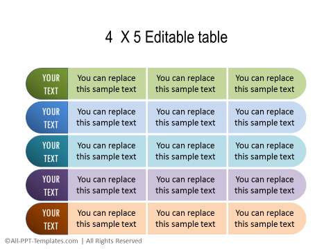 Creative 3 X 5 editable table | |